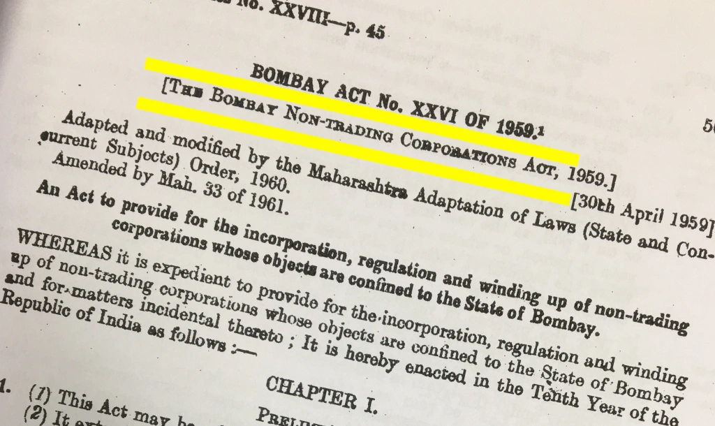Since you have taken interest to open this article, I believe that you might be associated or be concerned for any association which might have registered under the Bombay Non-Trading Corporation Act, 1959 (hereinafter referred to “Said Act”), this article might be little technical and boring to some as there are interpretation of legal provisions but utmost care is made to keep this article lucid.